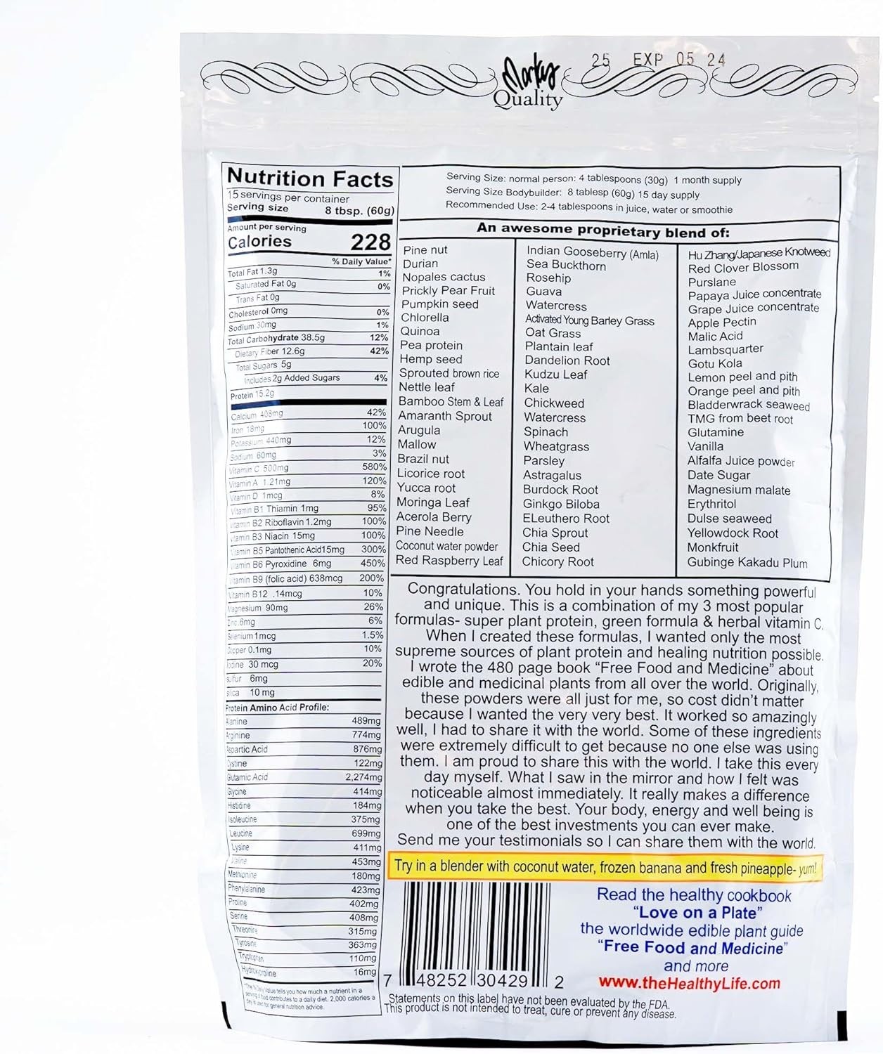 GreenPro-C formula. We took our three main Wild Force products – Green Formula, Super Plant Protein, and Herbal Vitamin C – and pre-mixed them together so you don’t have to buy them separately and measure out the portions. Just scoop into your smoothie, and you’ll have everything you need for the day. The product ratios for the GreenPro-C are: